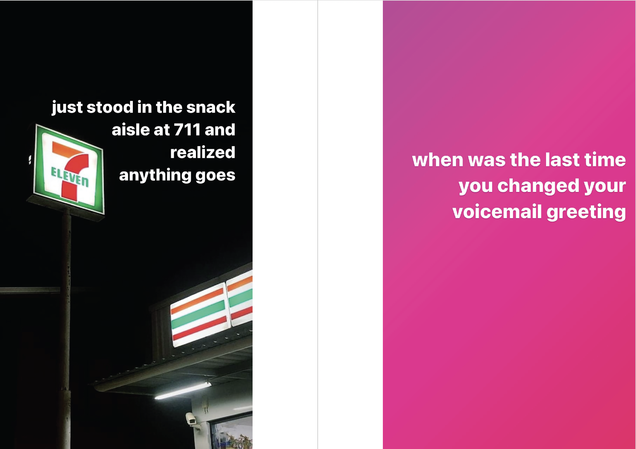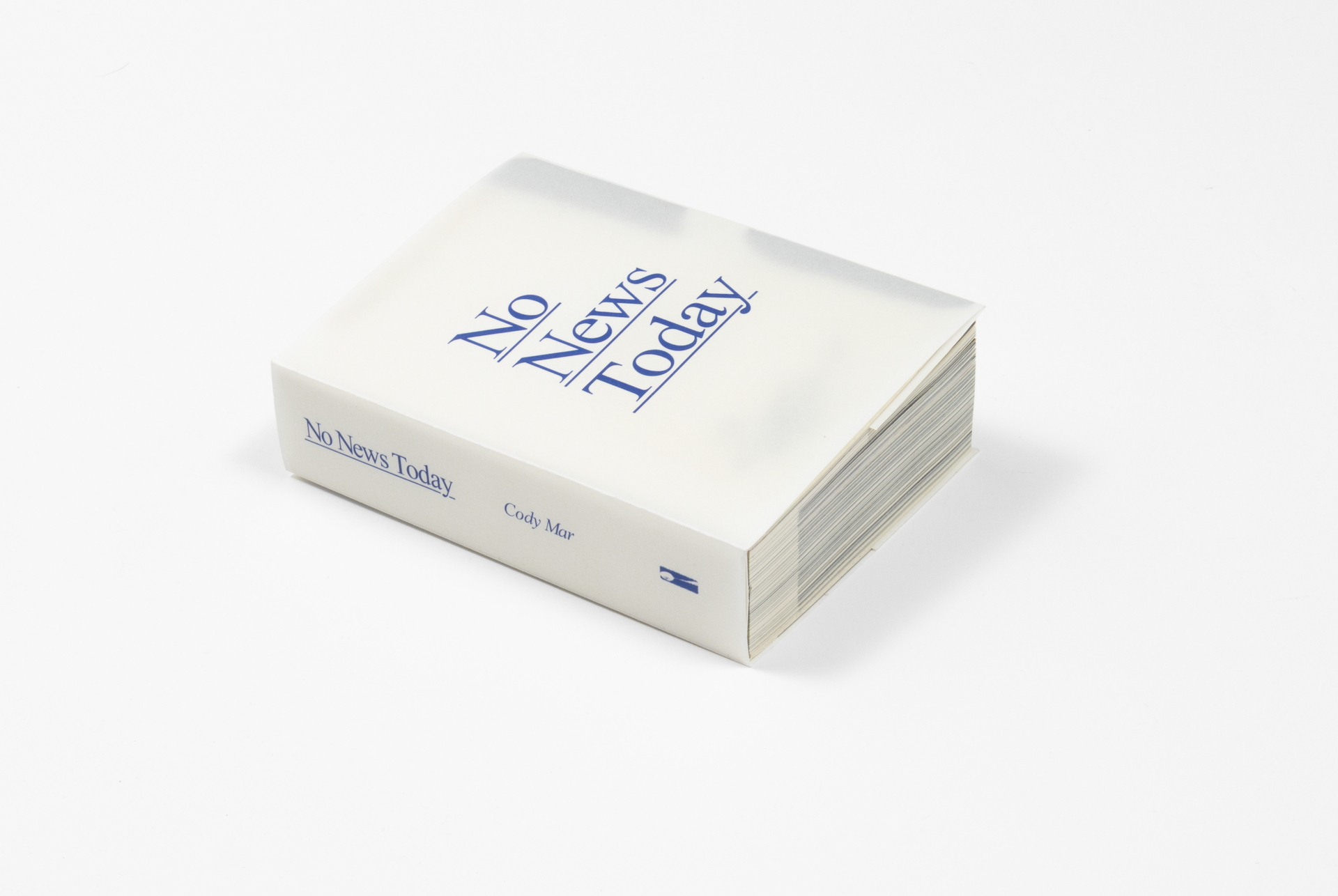 No News Today is a compilation of sustained engagement with IG Stories as performance art. As Cody writes, this daily practice allowed him to “find his voice.” Dubbed codyposts by friends and followers, this new book is a 500-page representation of the era, and a way to appreciate the posts anew with an analogue touch.